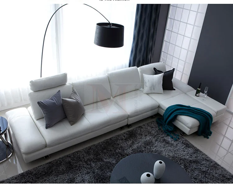 أريكة جلدية حقيقية مقطعية لغرفة المعيشة أريكة زاوية أثاث منزلي أريكة على شكل حرف L مسند ظهر وظيفي أرجل حديثة من الفولاذ المقاوم للصدأ