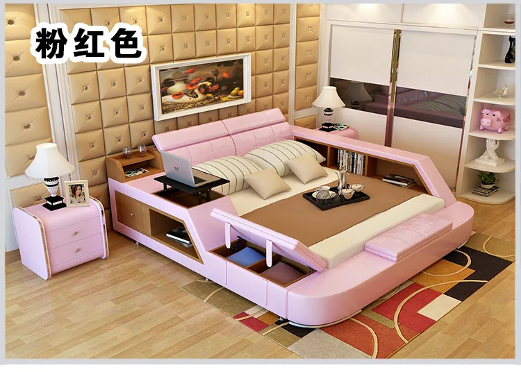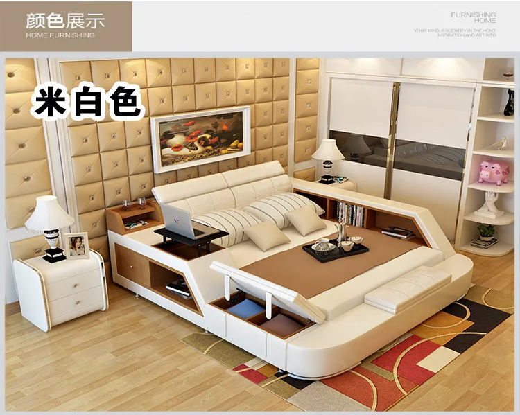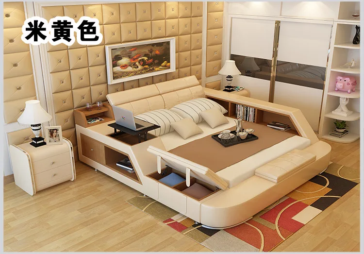 إطار سرير جلدي حقيقي حقيقي سرير ناعم عصري مع تخزين أثاث منزلي لغرفة النوم