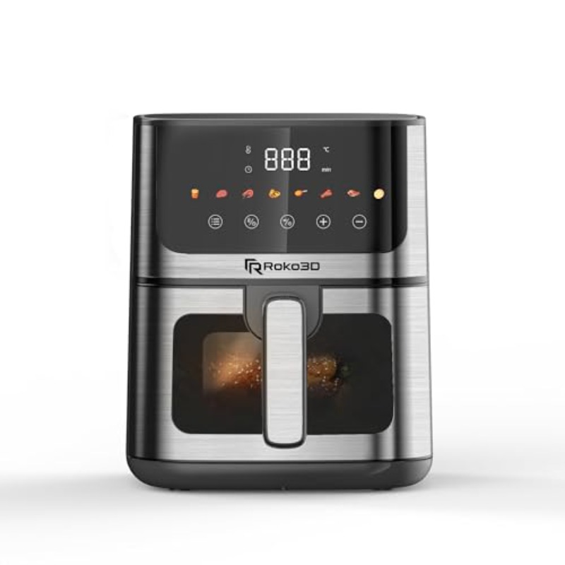 قلاية هوائية مع نافذة مرئية سعة 5 لتر لـ 35 شخصًا 8 في 1 للقلي والخبز والتوست والشوي والتدفئة بدون زيت 1400 واط آمنة للغسل في غسالة الأطباق تصميم من الفولاذ المقاوم للصدأ أسود وفضي فاخر، قلاية هوائية سلة مزدوجة، قلايات هوائية من الفولاذ المقاوم للصدأ، قلاية هوائية صغيرة، قلاية هوائية مزدوجة، صينية قلاية هوائية، تحضير الوجبات، طبخ منزلي، جهاز أنيق، تصميم أنيق، تشطيب ممتاز، هيكل عالي الجودة، موقد ذكي، قلاية متعددة الوظائف، قلاية هوائية للطبخ، قلاية هوائية سوداء، قلاية هوائية سلة مزدوجة، سلة قلاي